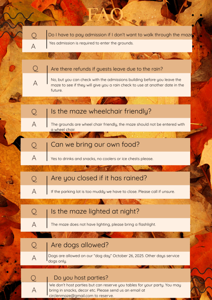 We are CLOSED Saturday 10/25 due to rain! We will reopen on Sunday 10/26 at noon for Doggie Day, and stay open until 10pm for final Lights Out Maze!